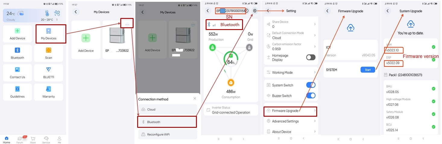 Hello, a Bluetooth connection is required to upgrade the firmware. Please follow the steps in this image.