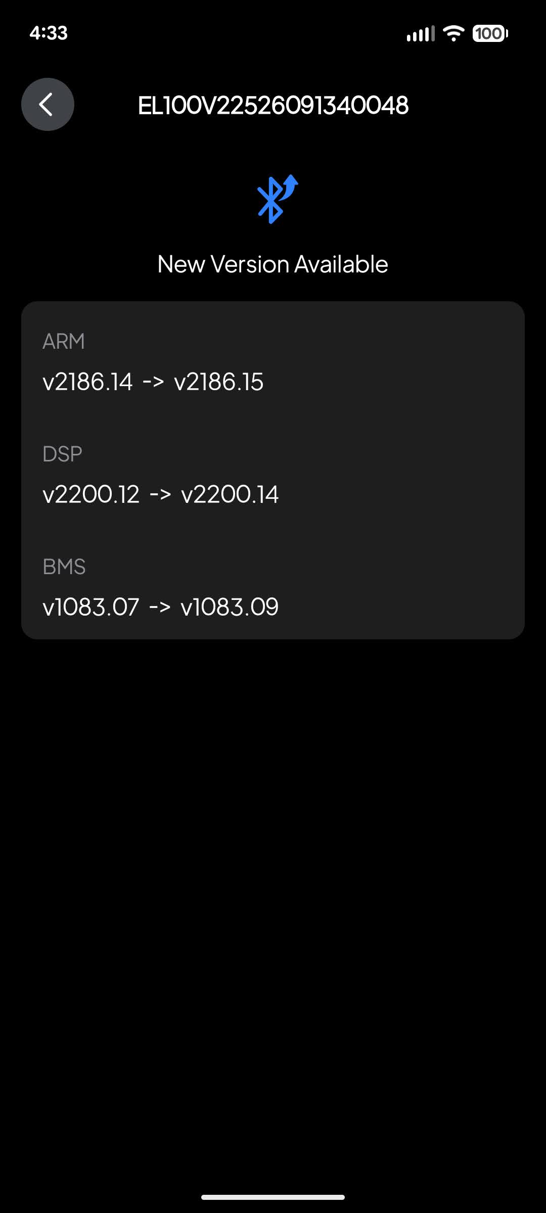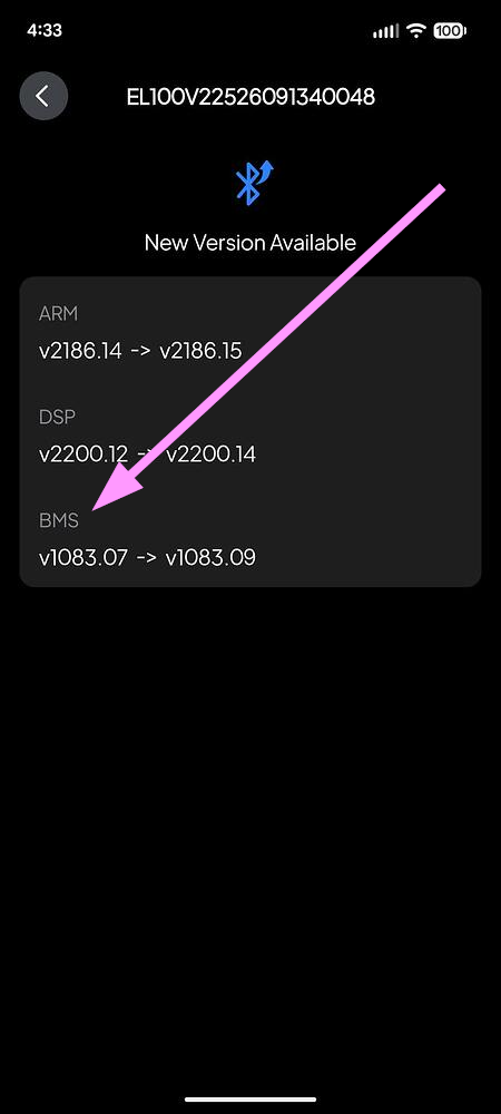 My S/N is EL100V22532010068313 and my BMS firmware version is v1083.07