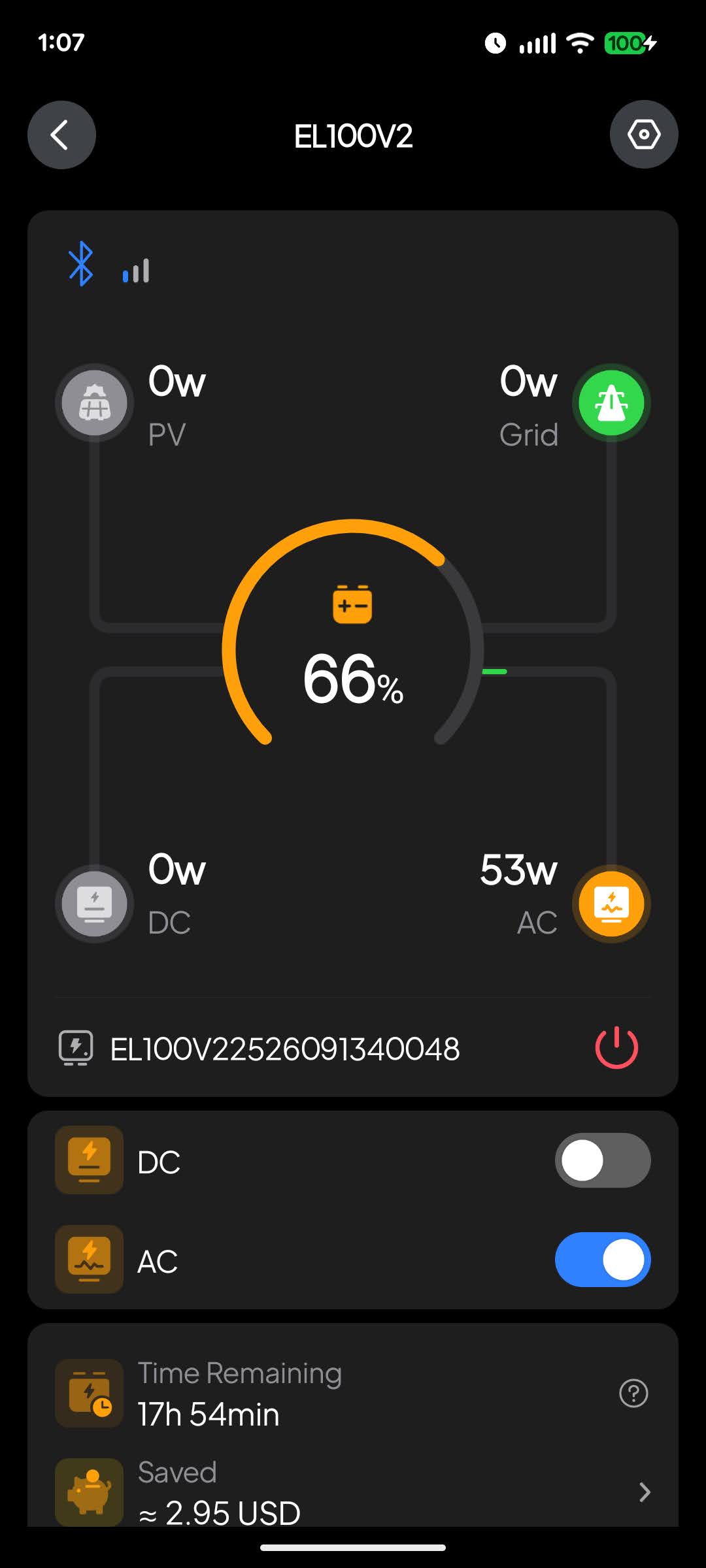 It might be the same problem I original had … I needed to connect via Bluetooth using the steps shown here: 100v2 Time Remaining Question - #12 by BLUETTI For some reason clicking the large Bluetooth button in the app still used Wifi rather than Bluetooth.