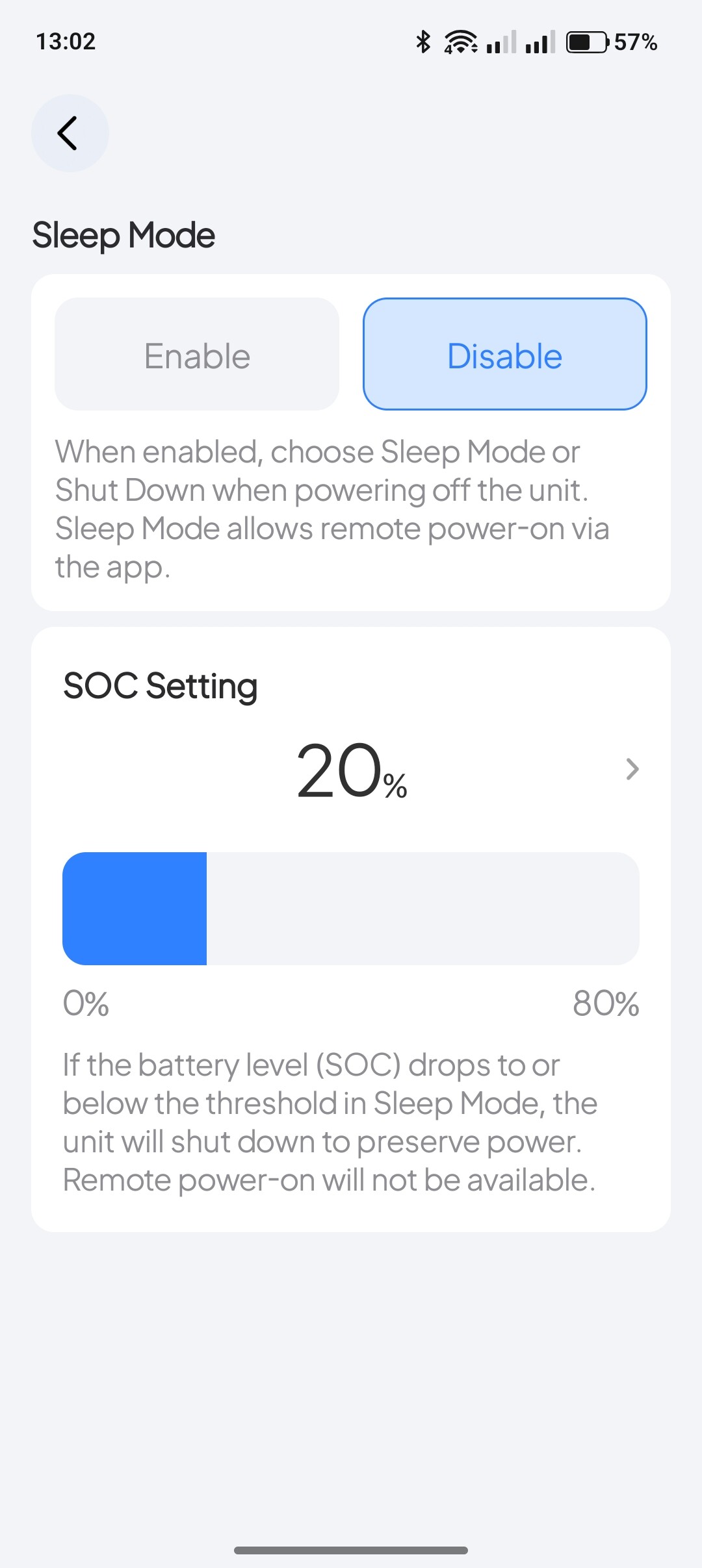 @BLUETTI_CARE hi, it does not matter whether sleep mode is disabled or enabled. Soc level is set below real soc level. Versions as in screenshots, should be up to date.