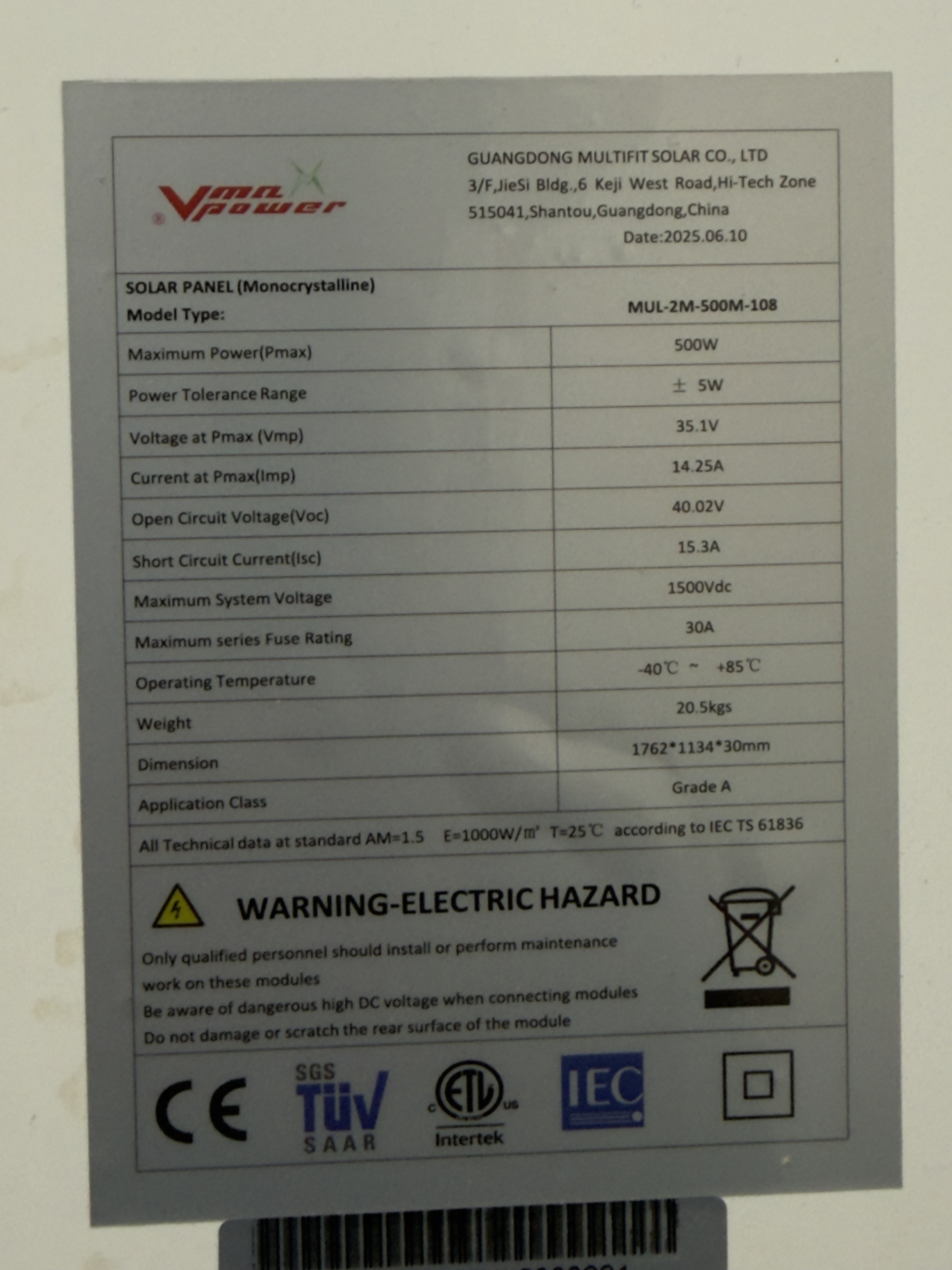 Have a 500Watt Solar Panel, on direct head sun around 1:00 PM (Haiti Time) we have plenty of sun. I know already that i won’t have the full 500watt, but at least i should expected to be around 300watt or almost 400watt when we