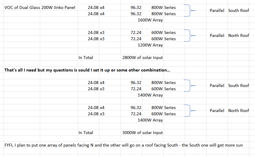 Generally during power interruptions power is restored relatively quickly. Maximum I went was 12 hours a few times. However I am.thinking about this in case of some extreme situation where power may be out for days. My mains inverter does not work when the power is out. I am not even sure what the maximum input voc of the ac200max is as this was something I literally just started thinking about recently.