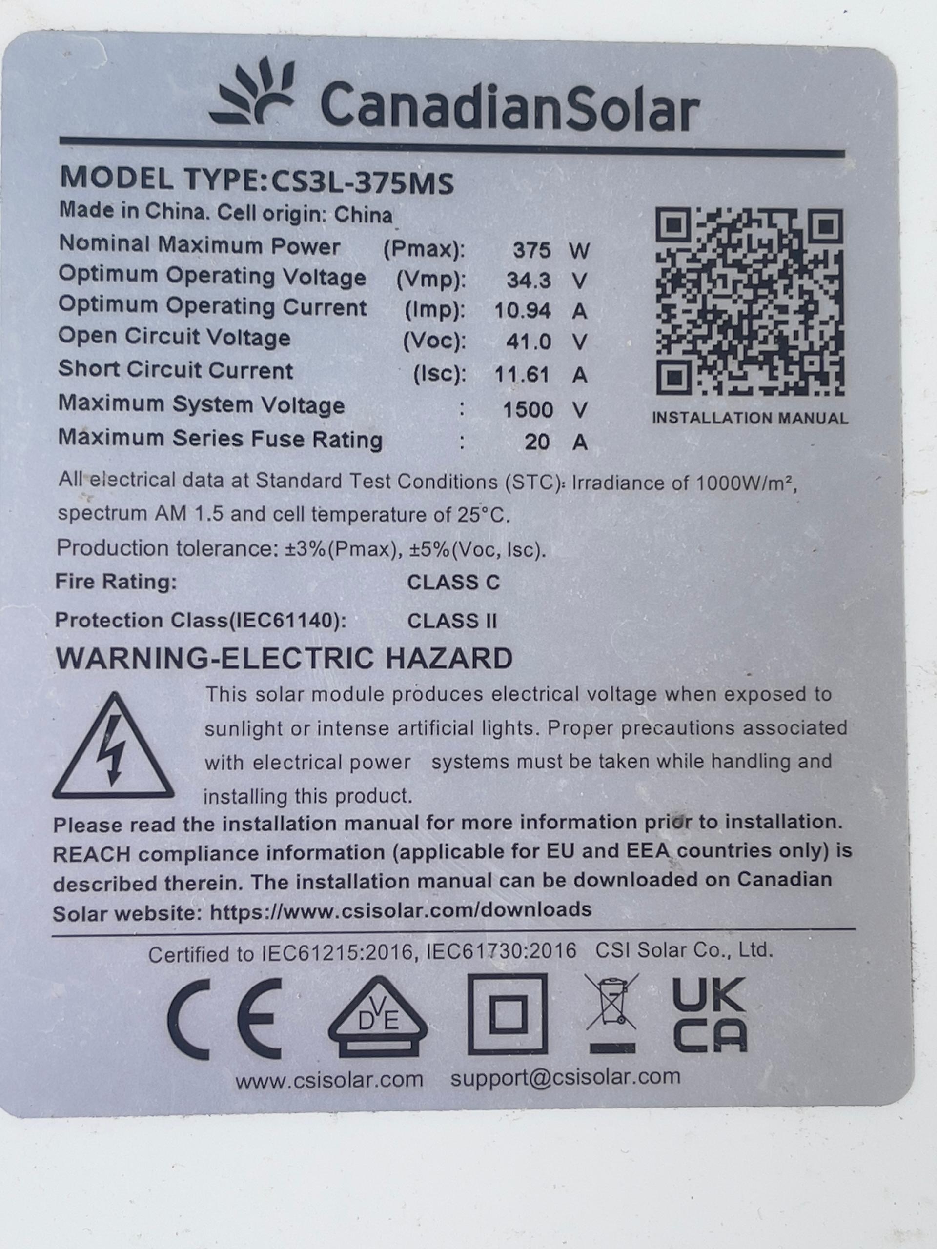 That said, I have no experience with that Brand. I have a home rooftop 6.6kW array with Trina solar panels, and they are a good panel at 440W each. I am not sure, but Canadian panels maybe Polycrystaline.