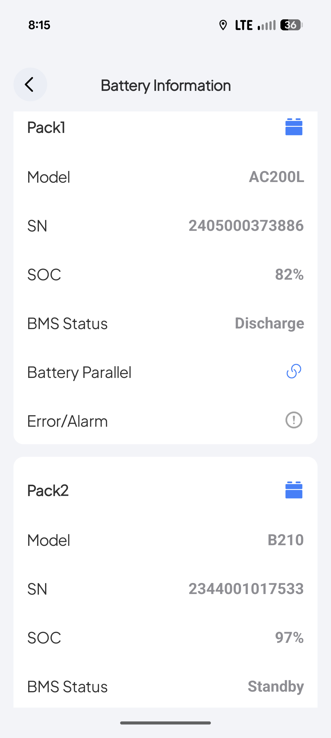 Eventually both packs charged to 100% and overall SOC 100%