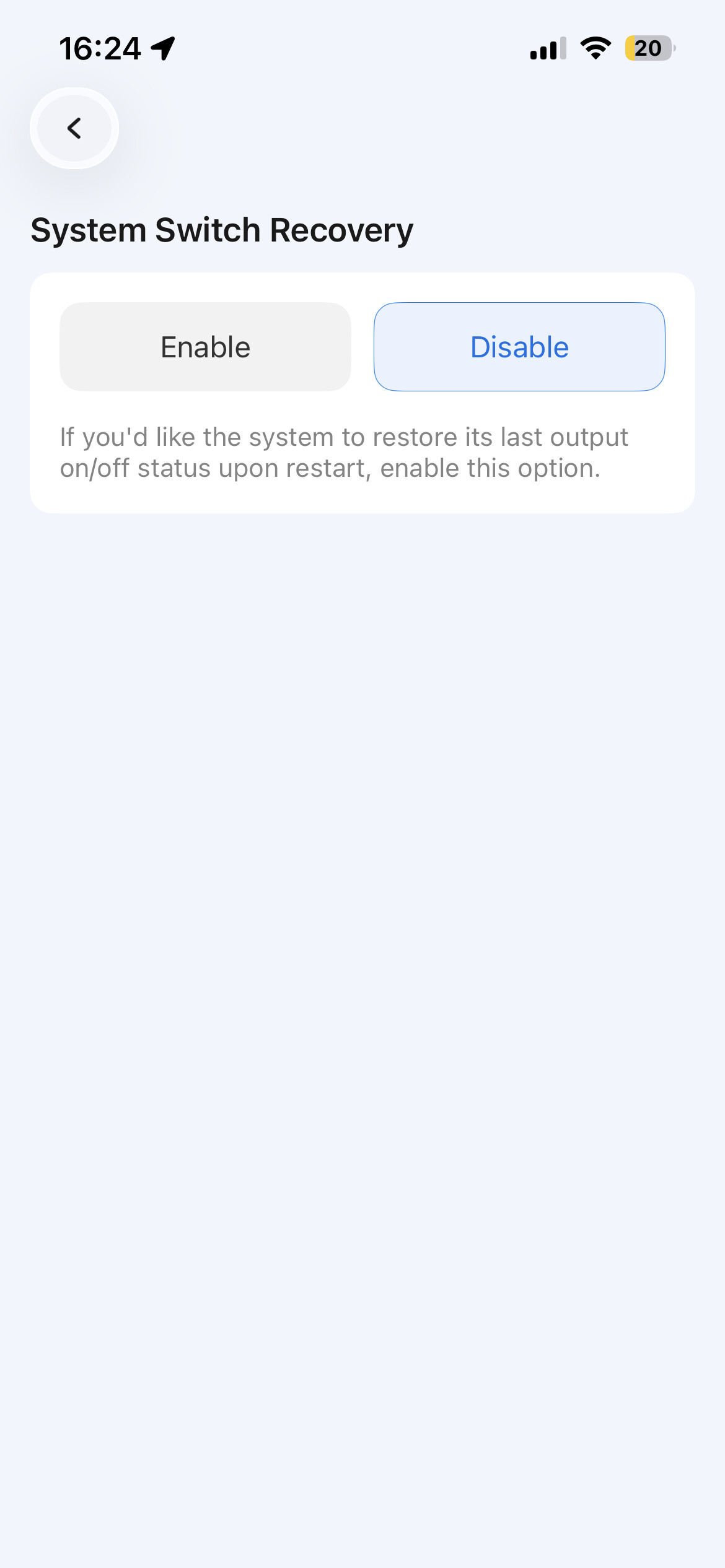 - Is there now a button in the app to enable or disable the System Switch Recovery function?