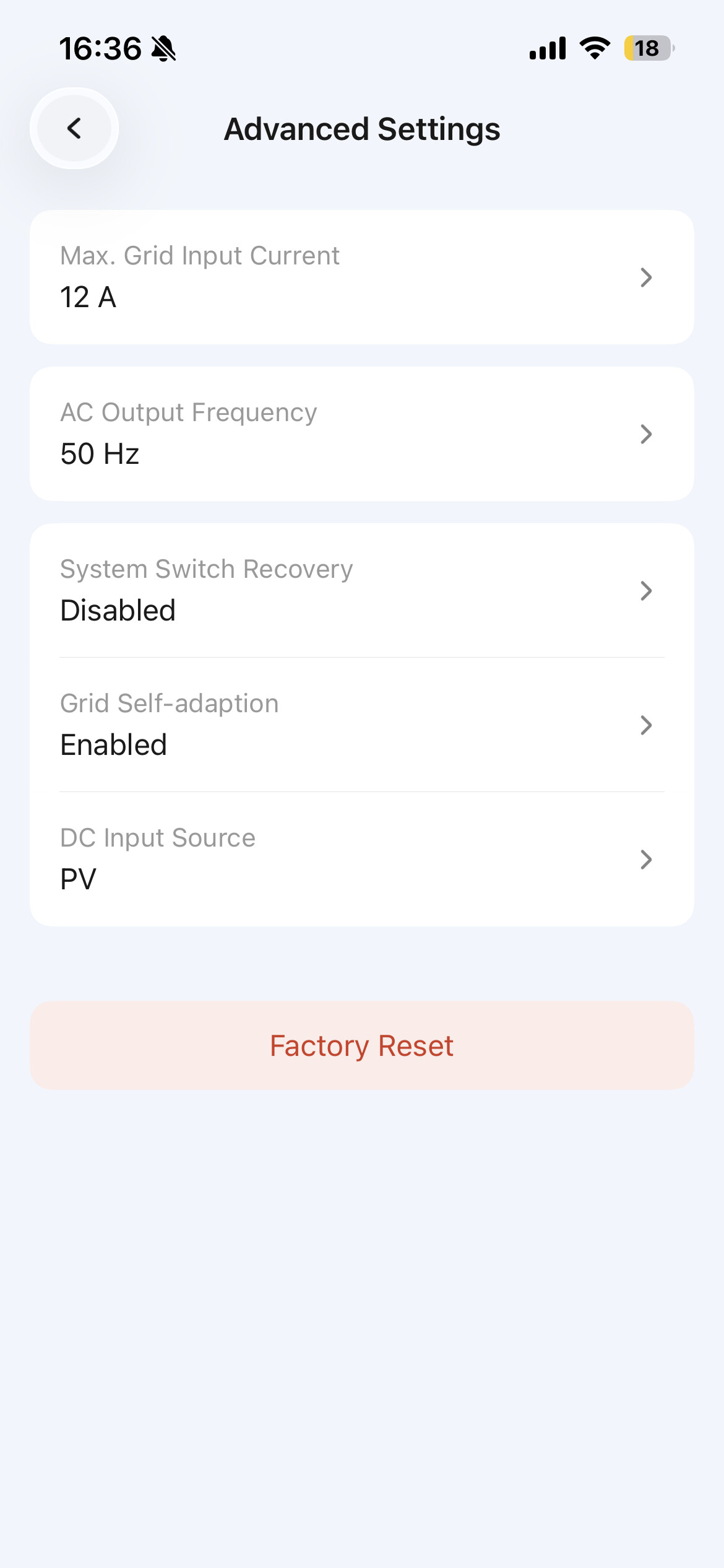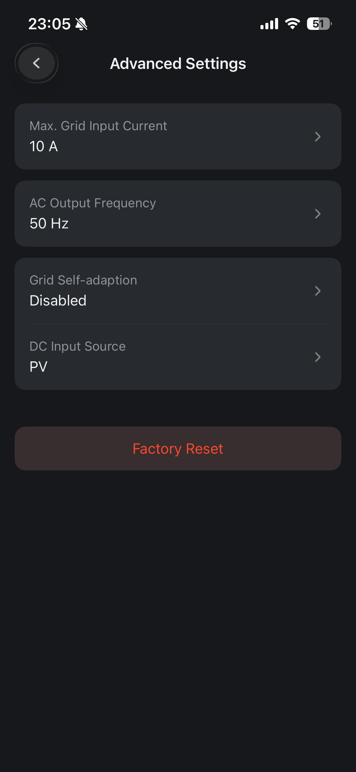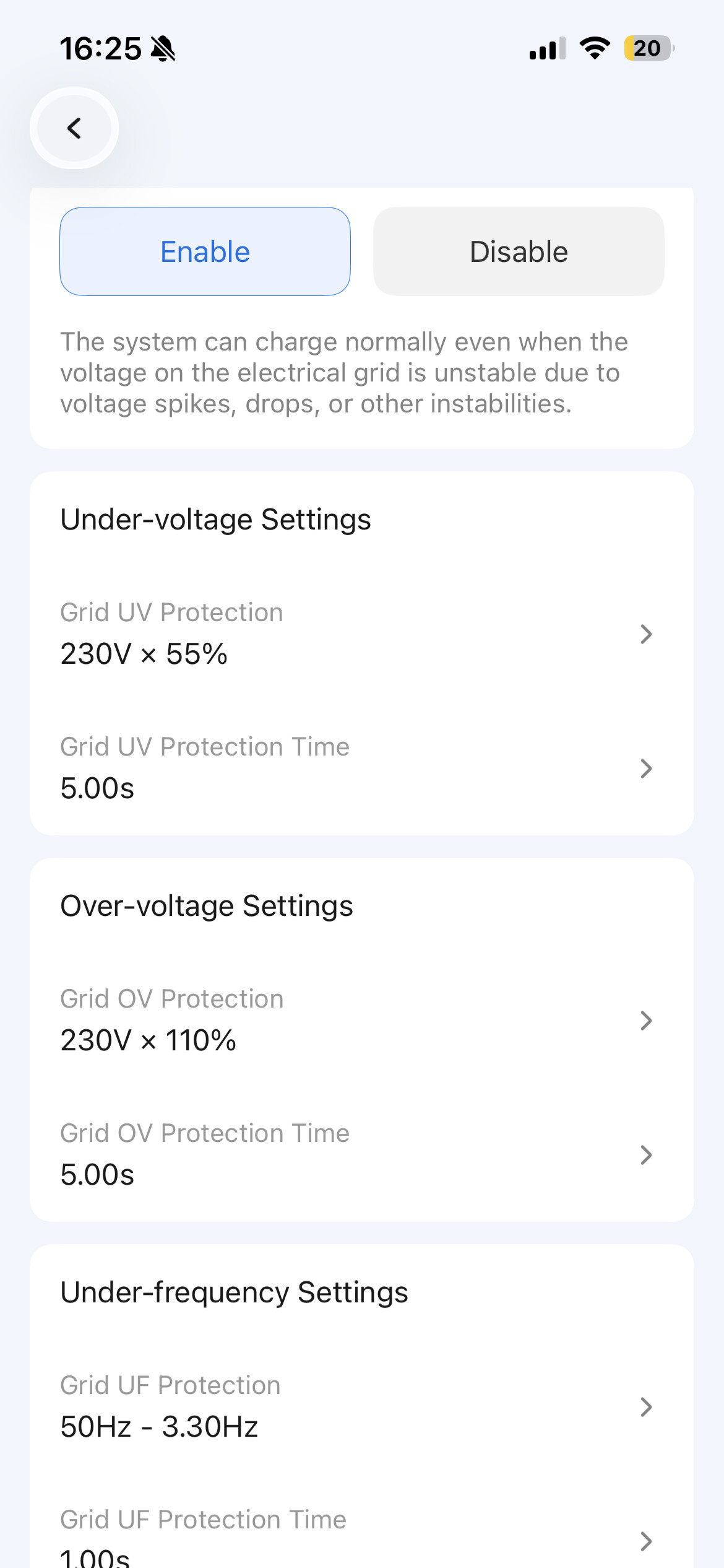 I updated the device, thank you. But I don’t see where to turn on this mode. There are also changes in grid self-adaption. Previously, it was 230 volts, but now it is 120 volts, you need to check for 230 volts, since in Ukraine it is 230 volts. What should I do and how do I find the section where to turn on saving the state before turning it off?