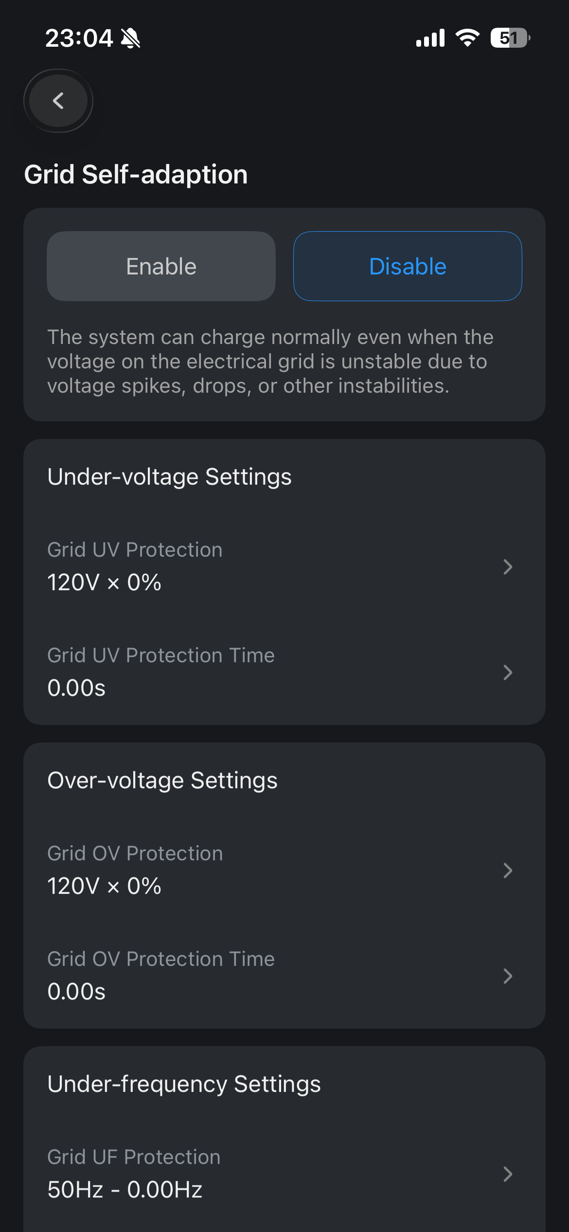 I also have the same issue as @DmytroDubinin whereby grid self adaptation has been changed to 120 volts which is not correct for the UK.