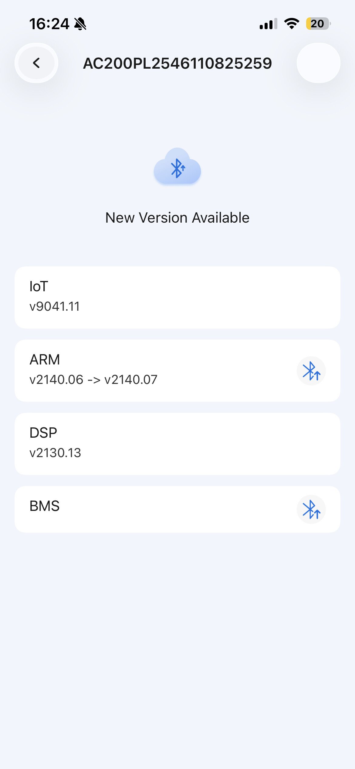Also the AC200PL BMS has an update icon but if I try and update the BMS I get a message saying that the BMS is up to date.