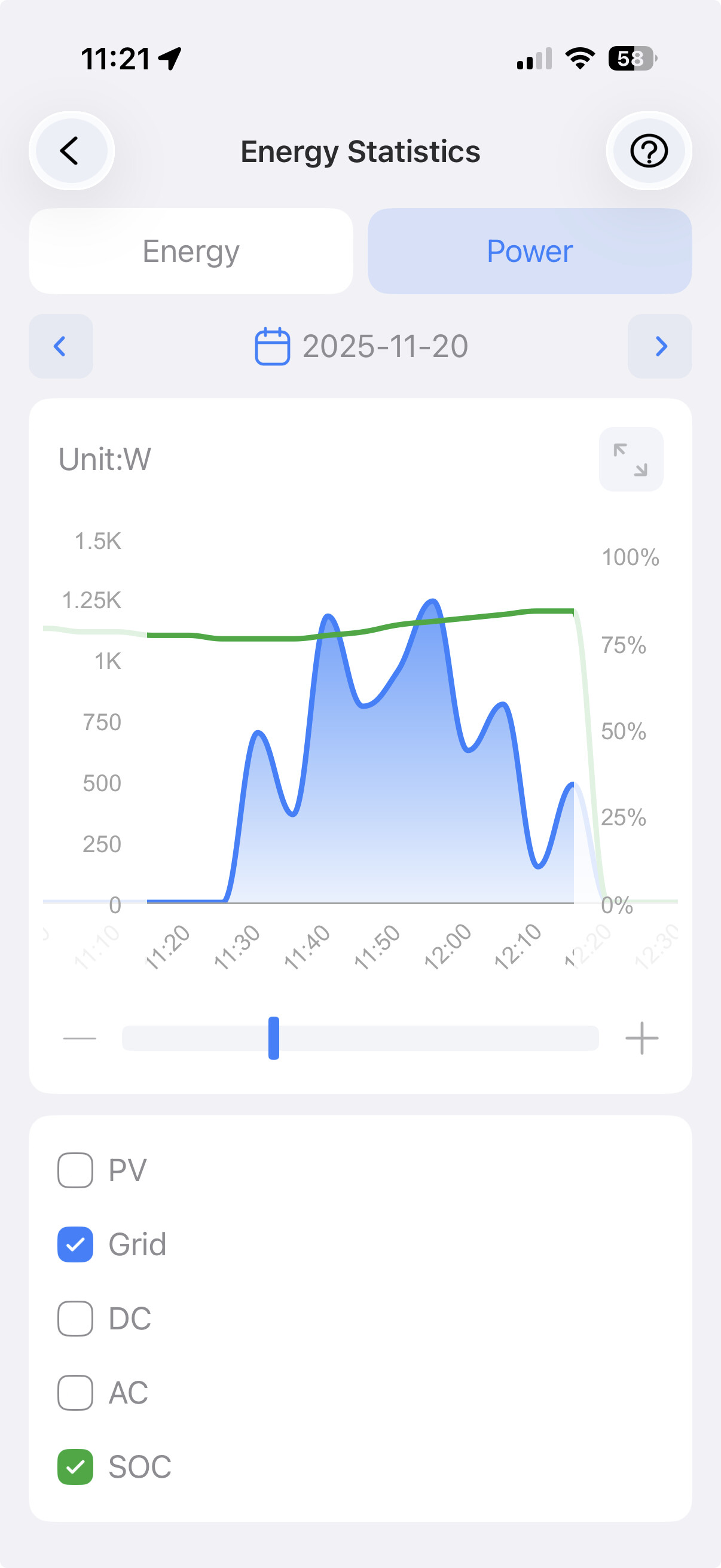 Could you click on the Grid icon when the charging power is at 546W? This will allow you to check the actual input voltage, which will help us troubleshoot the issue.