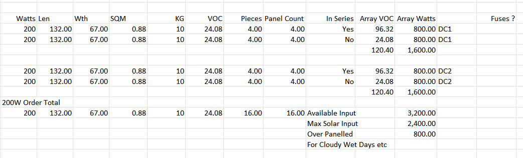 I see it’s a good idea to add FUSES to the panels connected in parallel… each panel has a Short Circuit Current of 10.72 A so I presume I’ll need 8 for 2 arrays of 4 panels in parrallel plus 2 more for the combined arrays entering DC1 and DC2 … ?