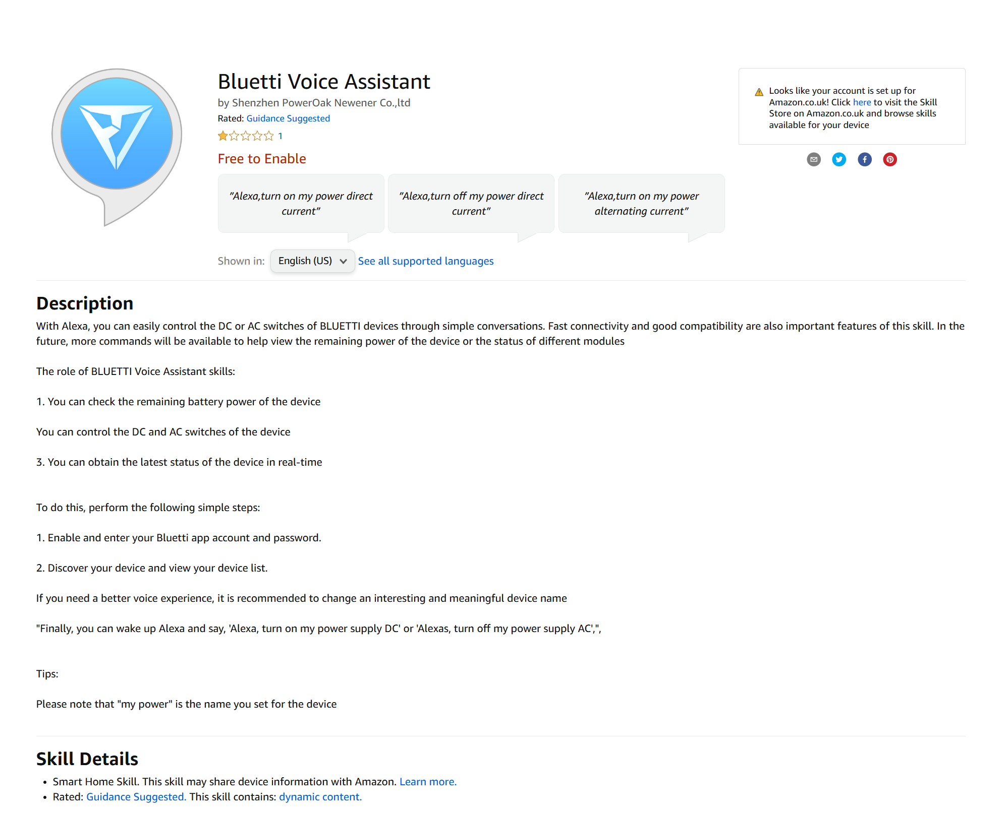 Please can you add the UK region for the Amazon Alexa Skill/app. For some reason it is USA only. I can’t imagine that there are any big differences that would prevent it working on the UK Alexa devices, but we are locked out from even installing it.