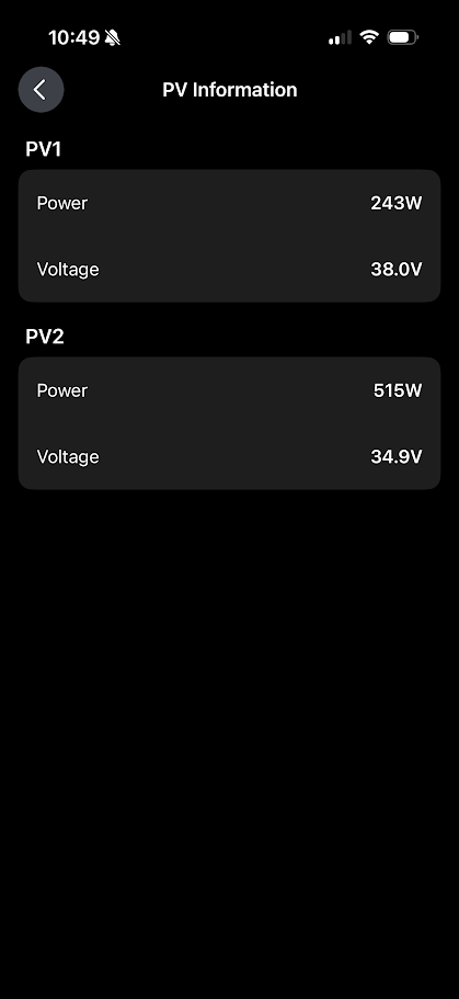 PV2 is doing 500W at 35V and PV1 is doing 240V at 38V.