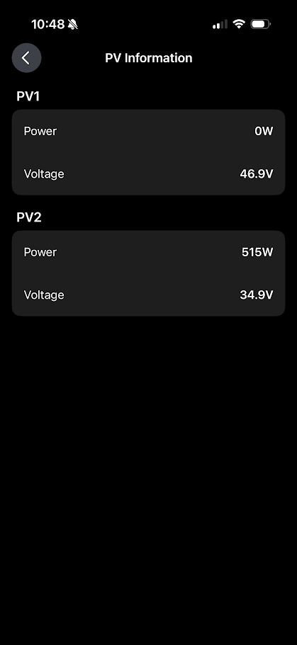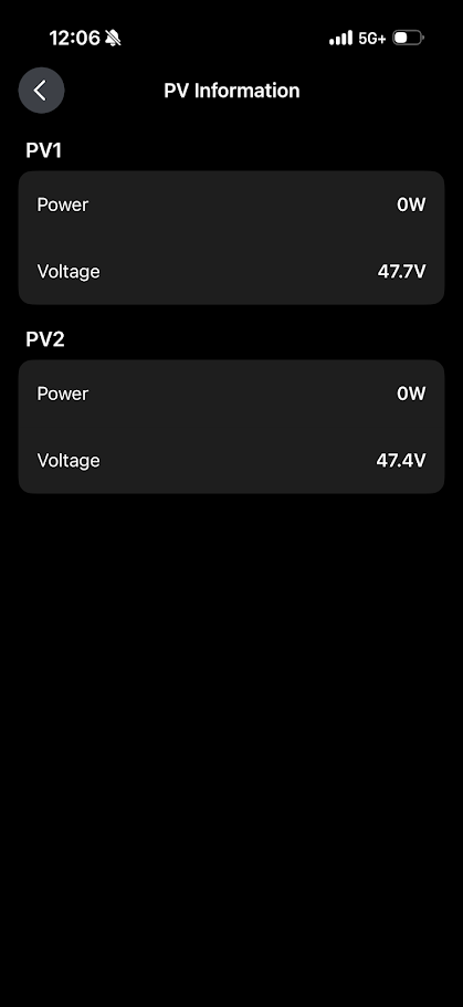 For whatever reason, PV1 shut off, and the app reports 0W at 47V