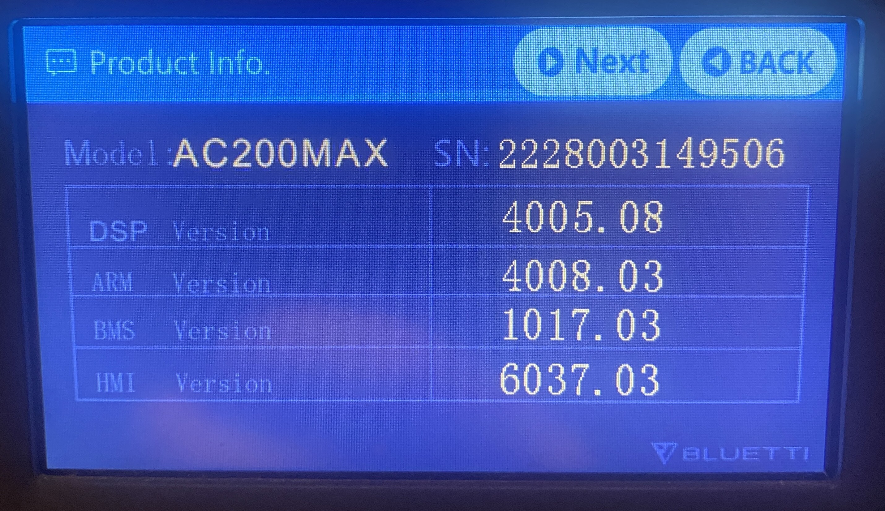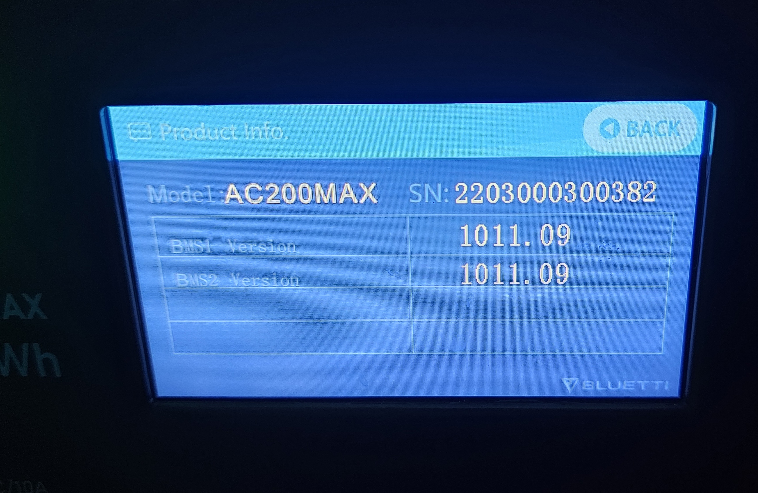 When connected to my AC00MAX the BMS version shows as 1011.09