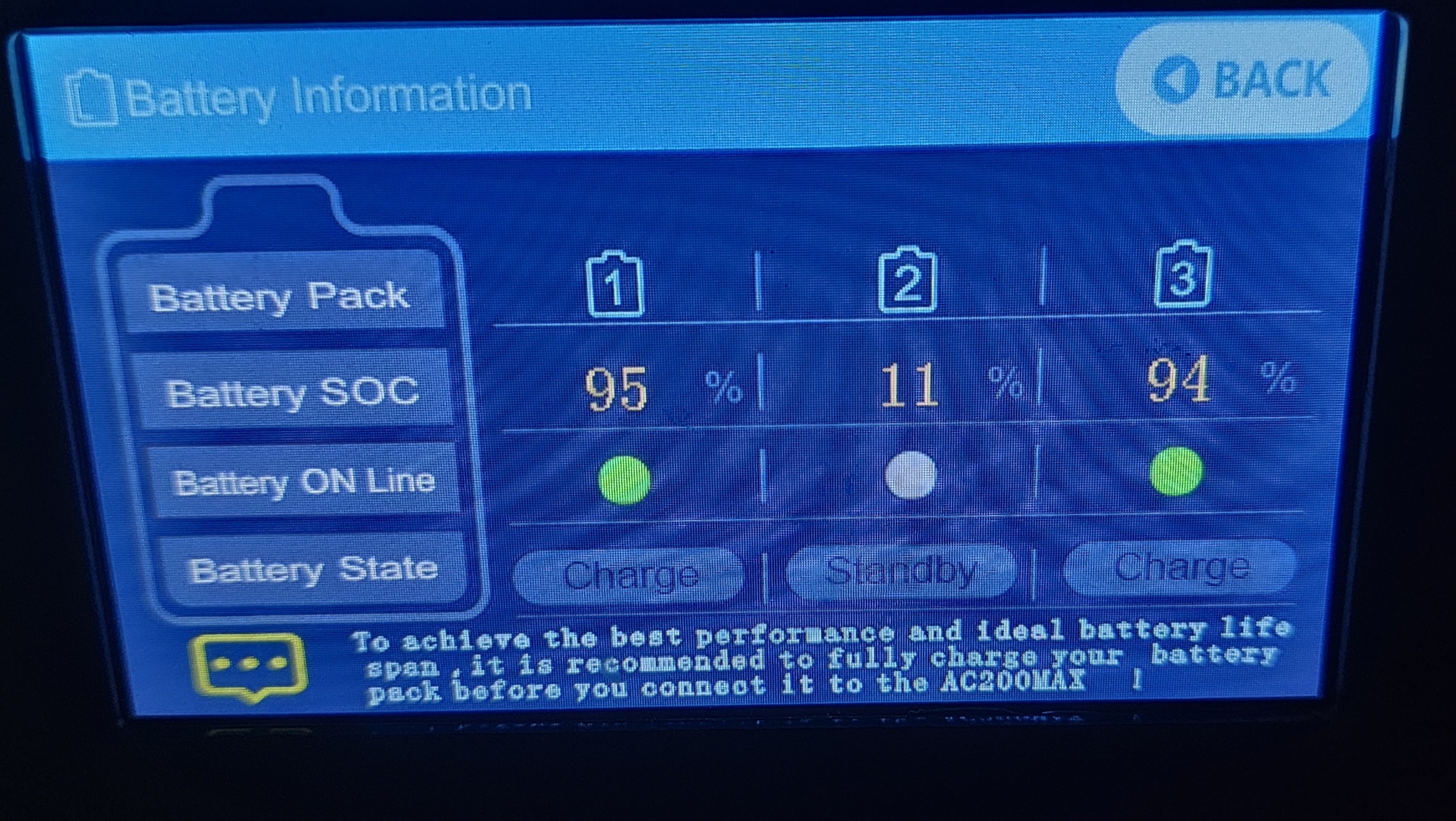 I if then Reconnect the B230 to the AC200MAX, the charge state only shows 11%.
