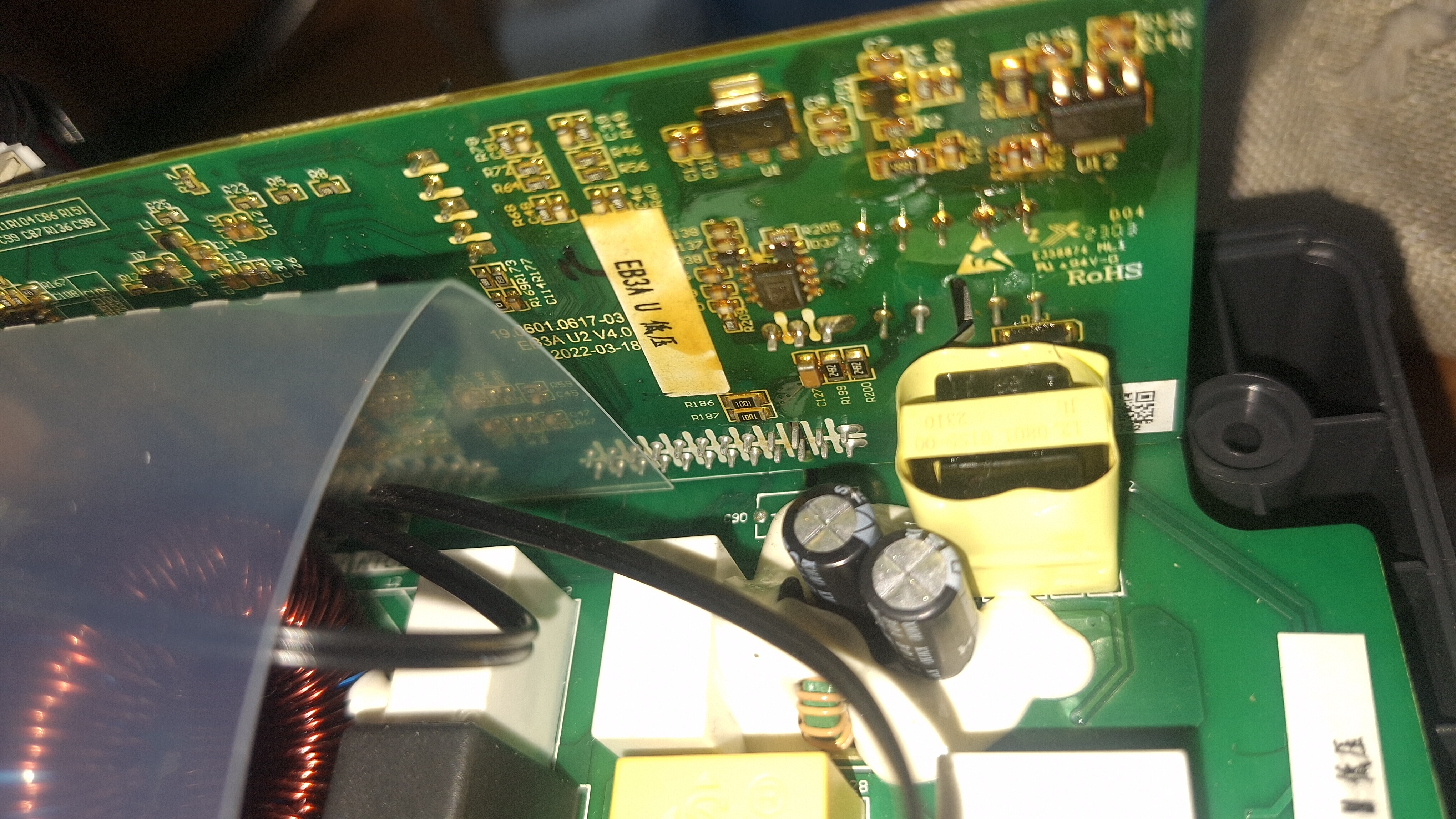 yeah that exact section of the board i watched a few youtube videos it was getting super hot, some of them were even smoking, feels like a heatsink is required there, i own one of these units its makes me worry as well maybe @BLUETTI can explain what is happening there. its too hot that burning it off conformal coating