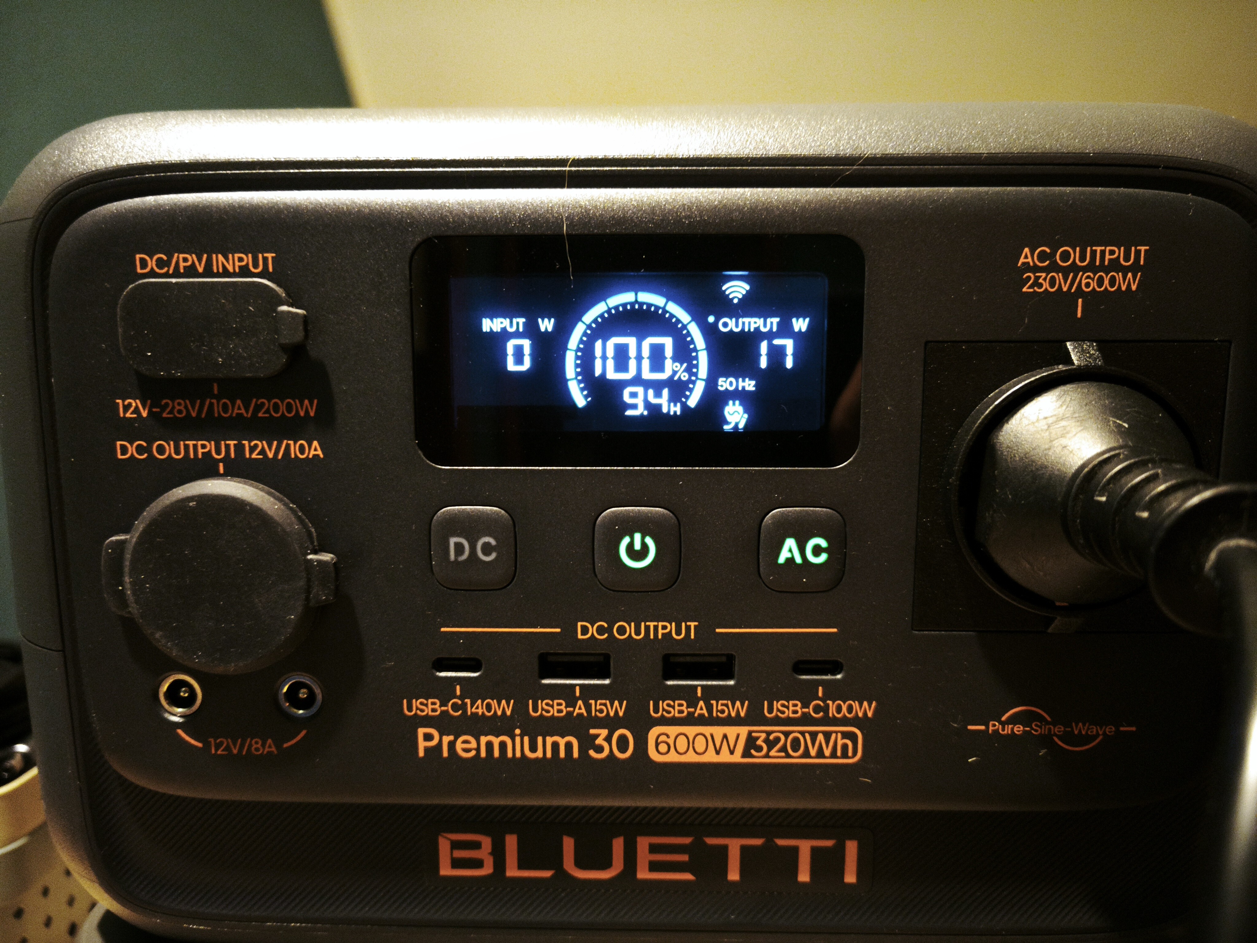 - Estimated runtime ~9 hours→ This equals ~158Wh, while the unit is rated ~320Wh