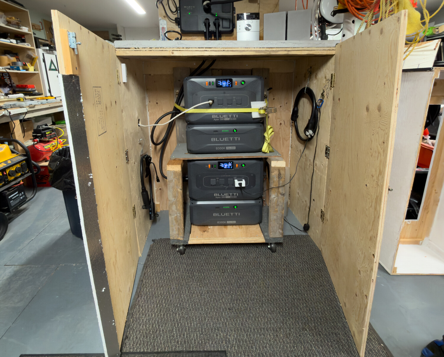 I have two Apex 300’s with each one B300K in parallel via the Hub A1. No solar panels as of now, simply a cleaner/quieter option to the generator during outages for the house.