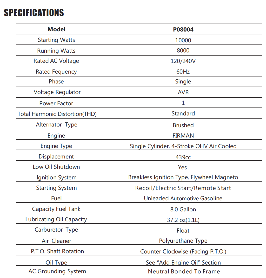 I also have a Firman 10000/8000watt gas generator (specs attached) which we’ve been using to feed the house via a manual transfer switch (30A) during outages.