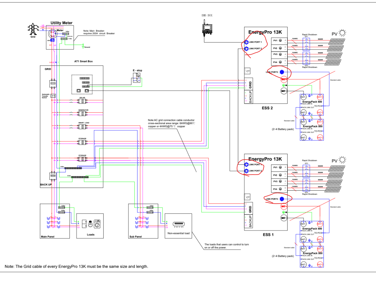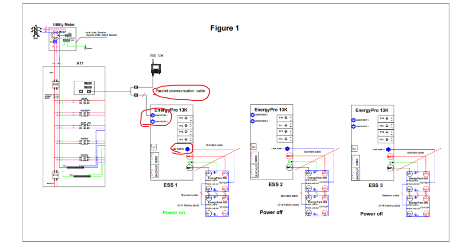 The EP900 only has two link ports, one goes to the EBOX or AT1, the other goes to the battery stack. The EP13k has three Link Ports. I cannot do the daisy chain communication as shown as there are not enough ports.
