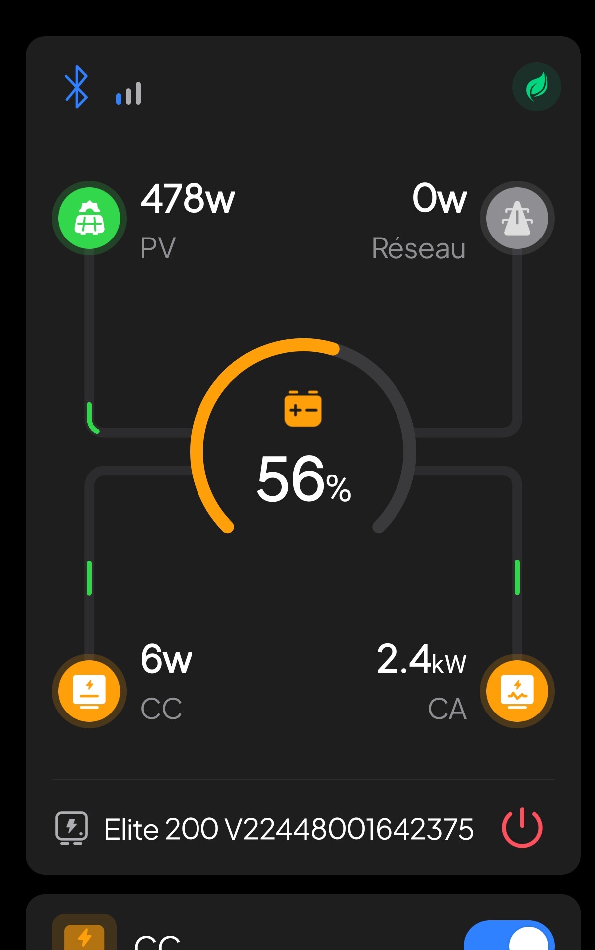 But I’m encountering a small issue with solar charging. It’s being charged by a solar panel (33V-440W). Most of the time, the charging system works well, and I reach around 350W of charging power in sunny conditions.