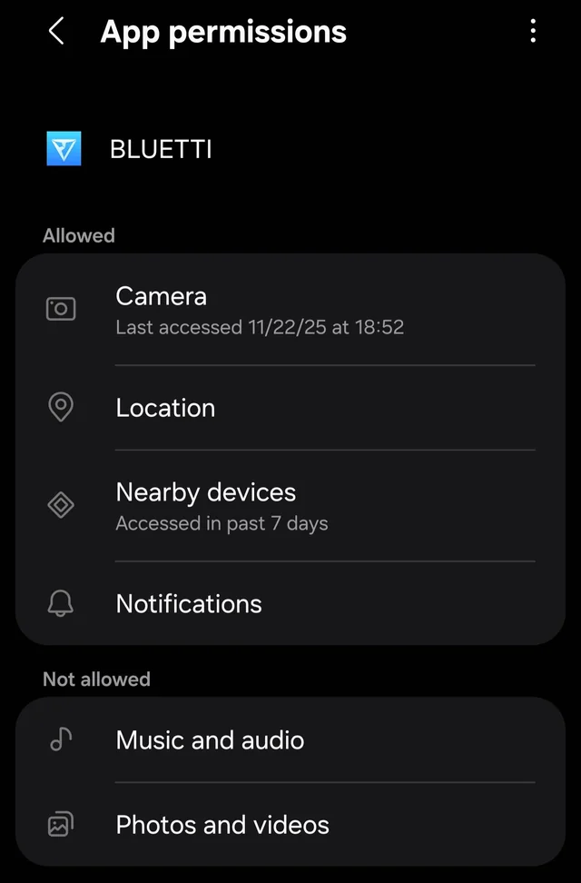 Hi, I recently bought a Bluetti elite 30 V2 (in EU) I can’t connect to he device over Bluetooth, I tried on a Samsung s25u, iphone 14 pro and a Redmi tablet. I gave every permission needed to the app and still I can’t connect.