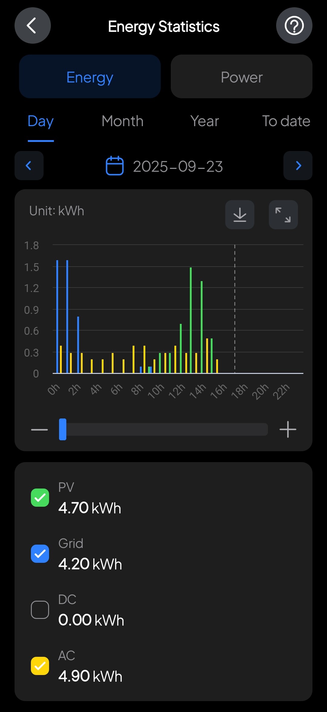 I have been using my Apex 300 along with my SolarX 4K since September 7th, but I have noticed that the Energy tab does not display how much solar energy was received from the SolarX 4K. Interestingly the Power tab does show it on the graphs. The pictures below show each tab’s display from today from about 2 PM (ET).