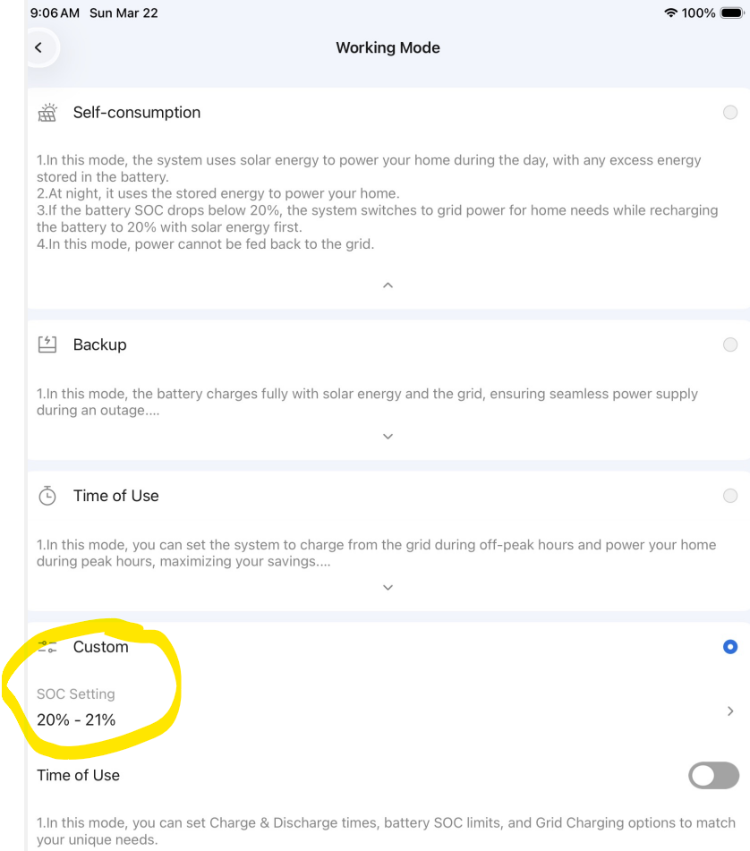 20% is SOC is the default threshold, I didn’t change.