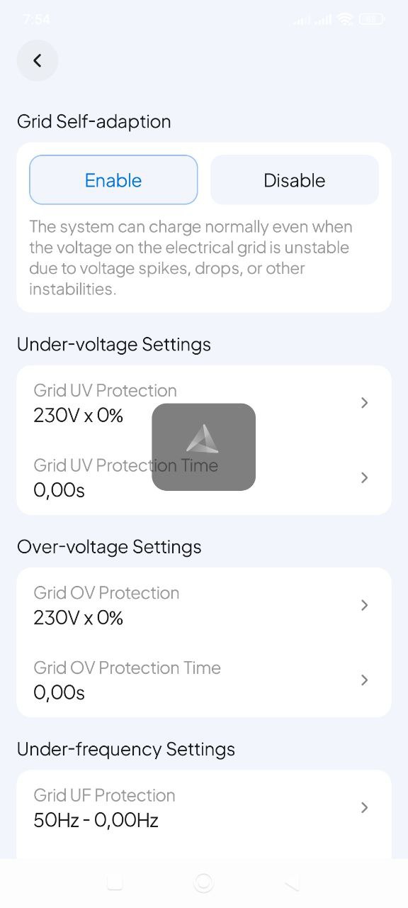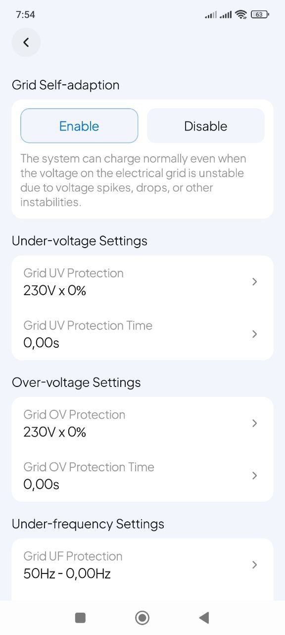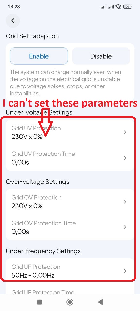 But why I can’t set the “Under-voltage Settings” parameters on “Advanced Settings”"Grid Self-adaption" page myself? These settings are not saved.