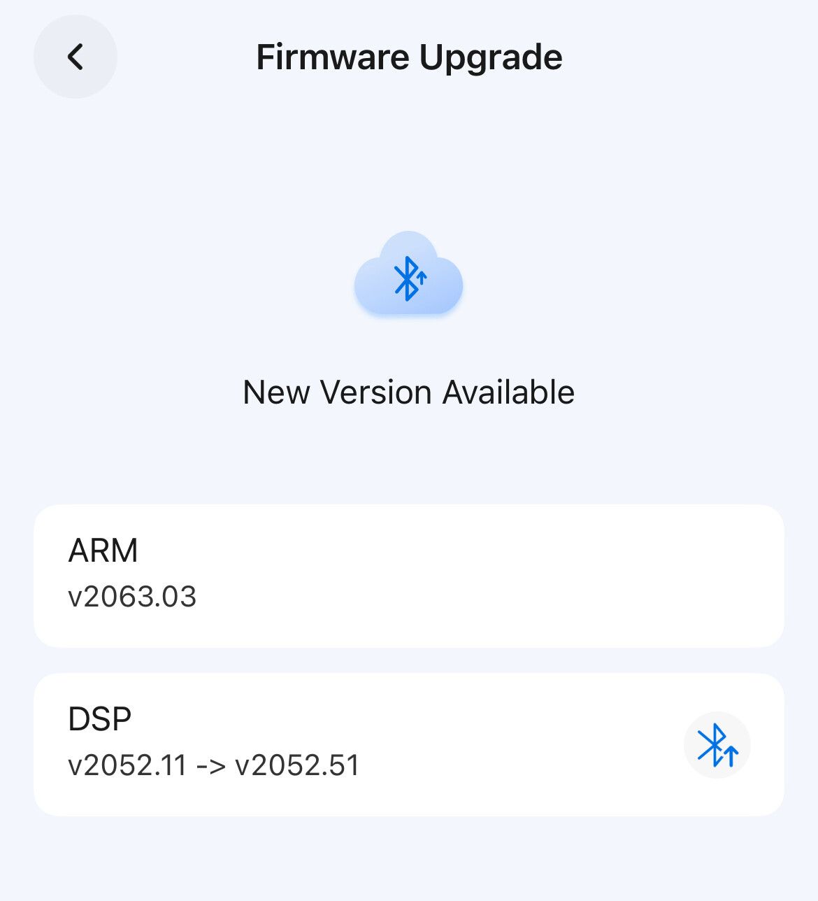 Thank you! Today I’ve received notification about new DSP update available. First 2088.03 → 2088.99 I uploaded the firmware successfully. Then I checked the app again and noticed the 2088.04 → 2088.99 update available, I also completed this update without errors (check screenshot below)
