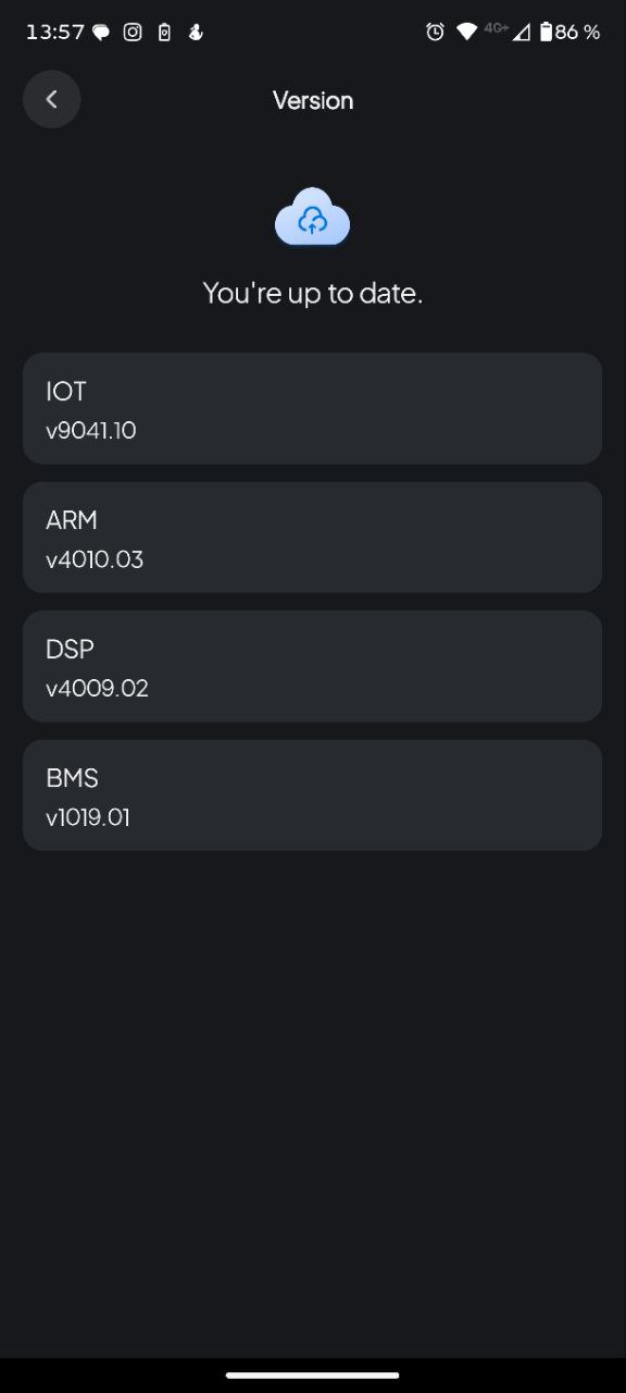 If there is no update available, or if the issue still persists after the upgrade, please provide the serial number (SN) of your EP500Pro and all current firmware versions (including DSP, BMS, ARM,and IoT).