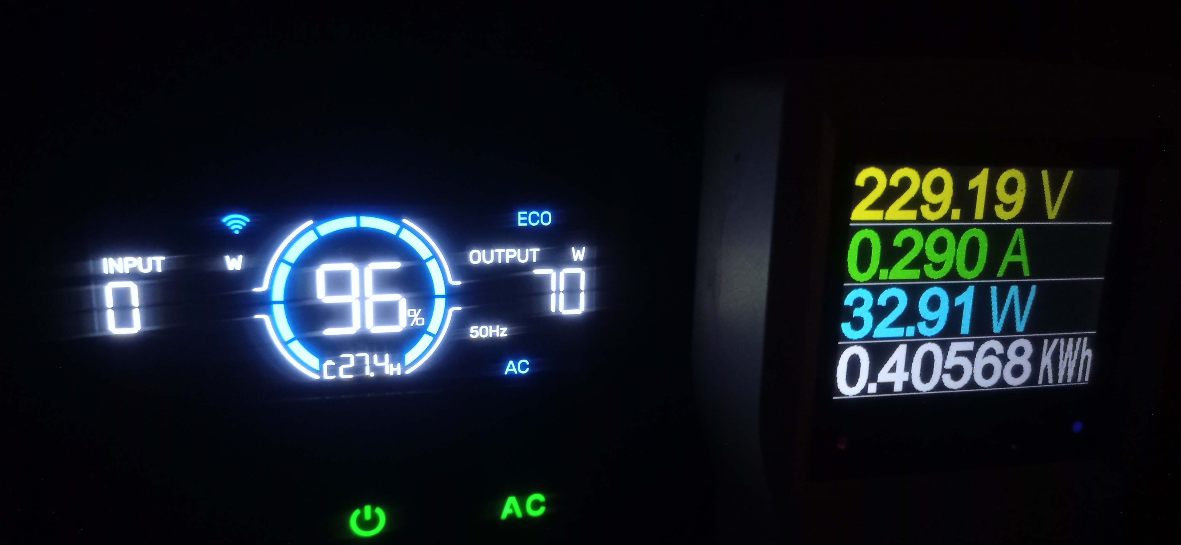 AC discharge with no load - SOC at 73% after 24 hours (55% before). The percentage drop is not rapid, like it was (3-4% per hour), and is very linear.
