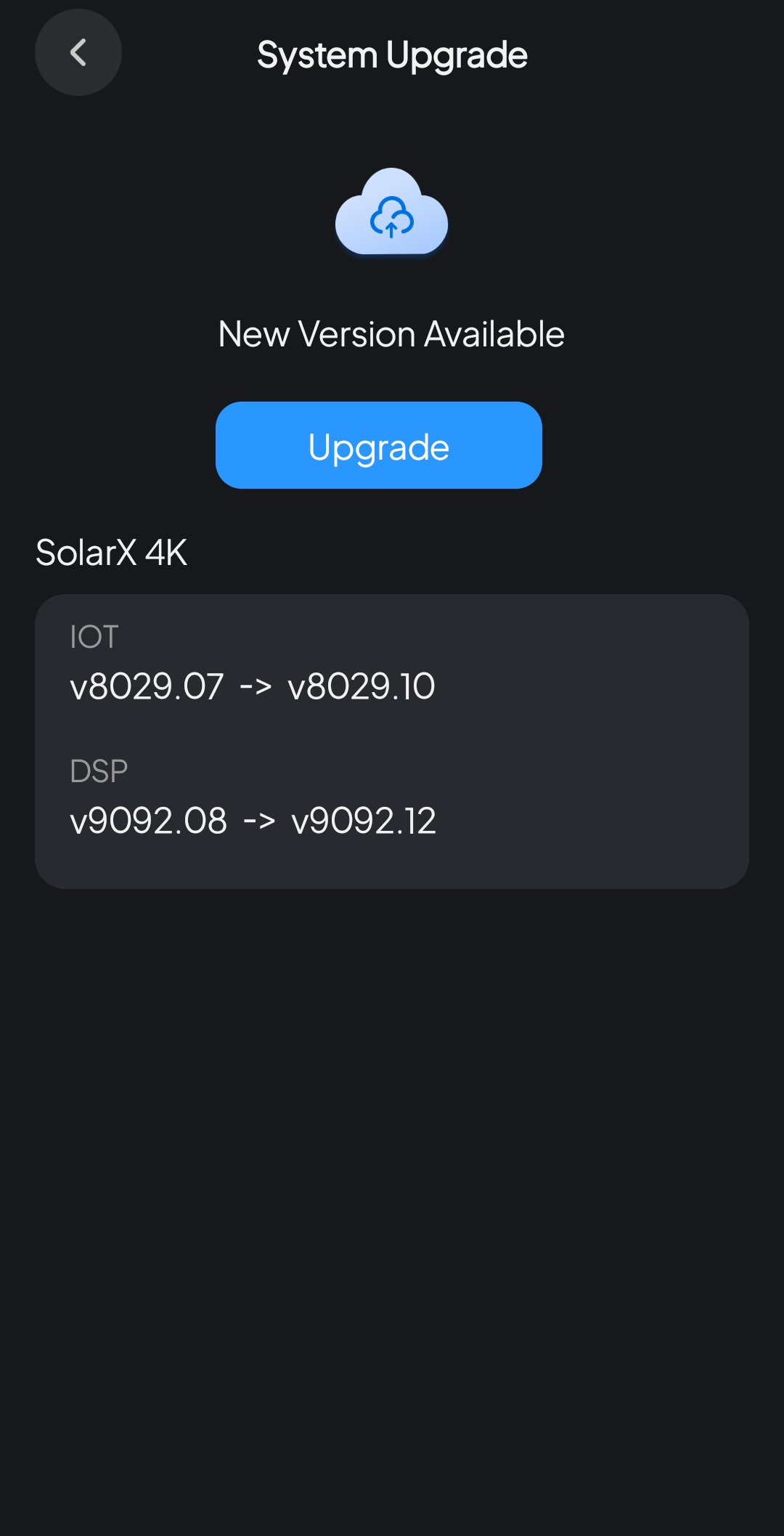 Hello @BLUETTI_CARE, I can confirm that the update is available for my SolarX now, and actually there are two updates available, one for IOT, and the other for DSP. I intend to install the updates tonight.