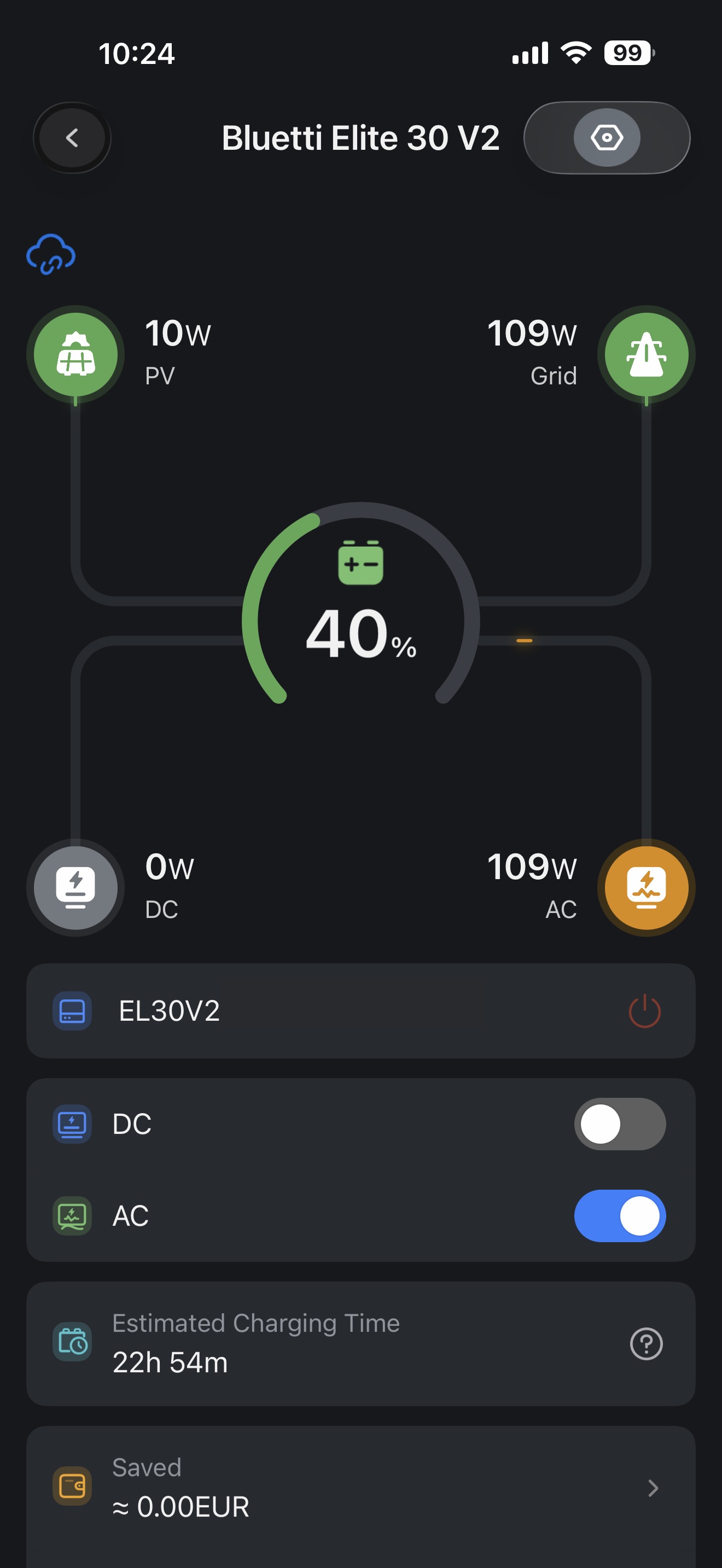 Occasionally, I manage to connect via the Cloud, but the connection is very unstable. When I power off the Bluetti Elite 30 V2, wait for a few minutes, and then turn it back on, Bluetooth connects briefly but remains unstable. While I can initially connect, the connection often drops when I try to adjust settings. Sometimes, it is even impossible to access certain options, let alone make any changes.